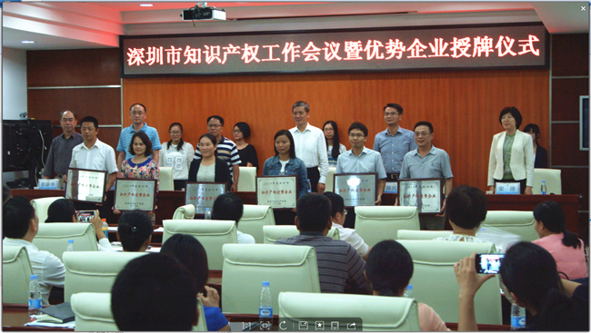 此次參會領(lǐng)導(dǎo)有深圳市市場監(jiān)督委員會常務(wù)副主任范鳴春、深圳市知識產(chǎn)權(quán)局副局長秦世杰、深圳市知識產(chǎn)權(quán)局知識產(chǎn)權(quán)促進(jìn)處處長陳民鋼、副處長宋洋等。會議內(nèi)容包括2014年度知識產(chǎn)權(quán)優(yōu)勢企業(yè)授牌儀式、最新知識產(chǎn)權(quán)政策宣貫以及知識產(chǎn)權(quán)促進(jìn)工作部署等。會上,范主任做了重要講話,充分肯定了深圳市知識產(chǎn)權(quán)工作在過去30年取得的矚目成績,2014年專利申請量連續(xù)四年全國第一,PCT申請量占全國一半;發(fā)明專利擁有量75件/萬人,是全國平均水平的15倍以上;90%以上的研發(fā)機(jī)構(gòu)、研發(fā)人員、研發(fā)投入、研發(fā)成果均來自企業(yè)。未來“十三五”規(guī)劃中,深圳市將在知識產(chǎn)權(quán)保護(hù)、運(yùn)營以及人才培養(yǎng)方面繼續(xù)推出新政策,將深圳打造為國際型創(chuàng)新城市“中國硅谷”。同時也指出了深圳市知識產(chǎn)權(quán)工作的不足:知識產(chǎn)權(quán)分布結(jié)構(gòu)不均衡,與發(fā)達(dá)國家發(fā)達(dá)城市依然存在差距等。