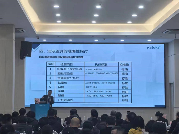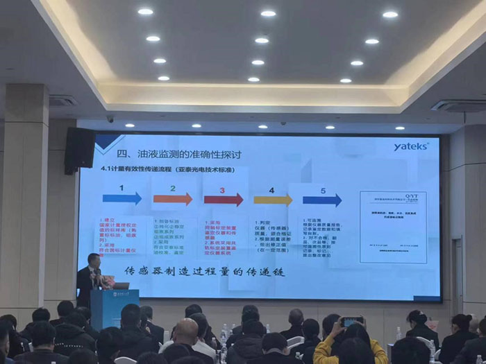 此次會議通過專題報告,如油液傳感器應用實踐、油品分析儀研發、油液監測大數據、設備潤滑等不同領域維度和技術交流以及參觀學習的形式舉行,深圳市亞泰光電技術有限公司鄭總在會上做了油液監測的準確性探討的專題報告,報告從金屬磨粒分析儀、原子發射光譜、顆粒污染度等部分油液監測專用儀器標準與校準物質;油液傳感器計量有效性傳遞流程等維度做了闡述。